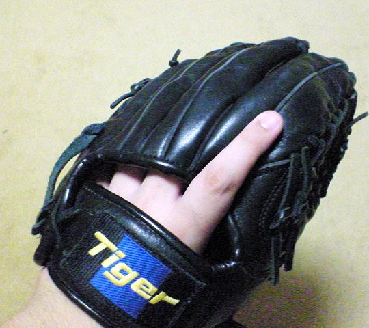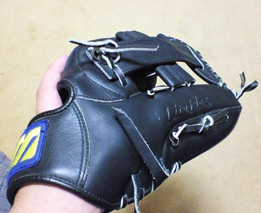 (軟式用はひとさし指のところのヒモを緩めておくと、軟らかくなります!)