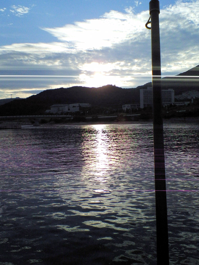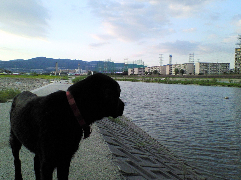 帰り際に河原で黄昏てたら、野良犬っぽい犬が隣に…